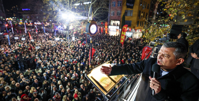“Biliyorsunuz AK Parti bu ülkede sadece bir avuç zengine iyi gelen bir partidir. AK Parti 2002’den bugüne; bu ülkenin ne gençlerine ne yaşlılarına ne Türklere ne Kürtlere ne Alevilere ne Sünnilere ne emeklilere ne emekçilere ne esnafa ne çiftçiye o günden bugüne daha iyi bir noktaya getirdiği hiç kimse yoktur. İlk yıllarda kriz sonrası bir miktar rahatlamayı kendi başarısı gibi gösterenler daha sonra bu ülkenin evlatlarının, bu ülkenin insanlarının her şeyine göz diktiler. Kendileri geldiğinde 8 çeyrek altın olan en düşük emekli maaşını, 1,5 çeyrek altına indiren AK Parti’nin kara düzenidir. Geldiğinde 7 çeyrek altın olan asgari ücreti 2 çeyrek altına düşüren AK Parti’nin kara düzenidir. Cumhuriyet tarihi boyunca bu sene ilk kez asgari ücrette, iki konu birden ilk kez peşi sıra tarihe geçmiştir. Bunlardan bir tanesi ilk kez 1970’lerde rahmetli Ecevit, Karaoğlan işçiyi masaya oturttuğu günden beri ilk kez asgari ücret işçi olmadan belirlenmiştir. Patron ve hükümet belirlemiştir. Ve tarihimizde ilk kez asgari ücret, açlık sınırının altında, ilan edildiği gün açlık sınırının altında ilan edilmiştir. Bu yüzden artık oturmak, susmak ve bir şeylerin düzelmesini beklemek mümkün değildir. Bu yüzden bu 2026 yılının bir geçim yılı olmayacağı bellidir. Geçimin olmadığı yerde demokrasilerde seçim olur. Bundan sonra geçim yoksa seçim vardır. Tüm emekçileri, tüm işçileri, tüm memurları, tüm polisleri, infaz koruma memurlarını, jandarmaları, imamları, müezzinleri, öğretmenleri, vergi dairesinde çalışanları, tüm esnafı, tüm çiftçileri, çay üretenleri, fındık üreticisini, üzüm üreticisini, pamuk üreticisini, narenciye üreticisini, sürekli seçim istemeye, seçimi talep etmeye, her gördüğü ile geçim sıkıntısını konuşmaya, ‘Geçim yoksa seçim var’ demeye davet ediyorum. Buradan Türkiye’ye ses veriyoruz. Geçim yoksa seçim var. Geçim yoksa seçim var. Geçim yoksa seçim var. Ey Erdoğan adayımı bırak, sandığı getir. Adayımı yanımda, sandığı önümde istiyorum. Buradan Erdoğan’a sesleniyorum. Ve diyorum ki; bak biz hem sokakta hem meydandayız hem zulüm altındayız ama son derece de yüksek moraldeyiz. Çünkü gücümüzü haklılığımızdan ve birbirimizden alıyoruz. Cumhuriyet Halk Partisi meydanların partisi, salonların partisine meydan okuyor. Cesaretiniz varsa biz buradayız. Getirin sandığı millet versin kararı.”